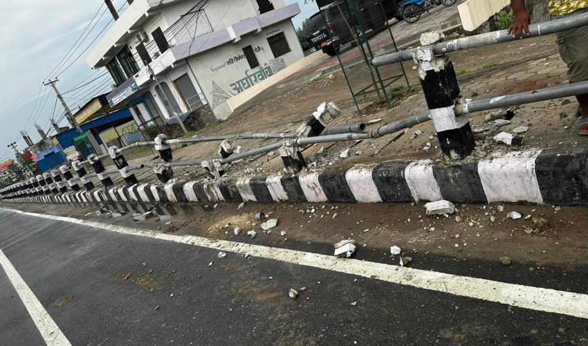 ६ लेन सडक खण्डको रेलिङ भाचेर चालक फरार