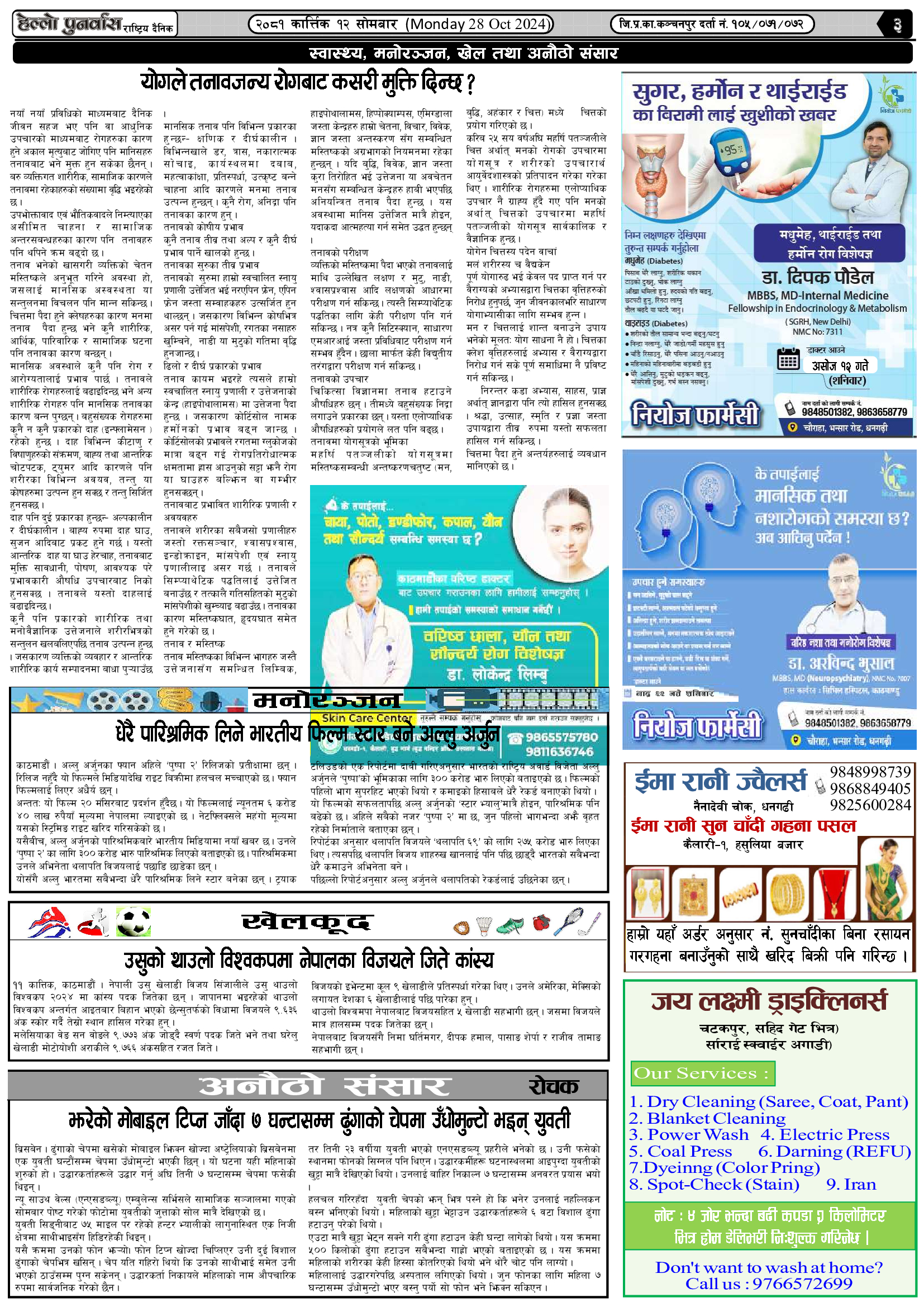 वर्ष : १०, अंक : १८८ २०८१ कात्र्तिक १२ सोमबार (Monday 28 Oct 2024) हेल्लो सुदुर मंगलवार, १३ कार्तिक २०८१, १८:५६ मा प्रकाशित Continue Reading Previous वर्ष : १०, अंक : १८७ २०८१ कात्र्तिक ११ आईतबार (Sunday 27 Oct 2024)Next वर्ष : १०, अंक : १८९ २०८१ कात्र्तिक १४ बुधबार (Wednesday 30 Oct 2024) सम्बन्धित समाचारहरु जन्मदिनको अवसरमा कुँवरद्वारा २ लाख बढी नगद तथा खाद्यान्न बितरण वर्ष : १०, अंक : २४७ २०८१ माघ २१ सोमबार (Monday 3 Feb. 2025) वर्ष : १०, अंक : २३८ २०८१ माघ ७ सोमबार (Monday 20 Jan. 2025) वर्ष : १०, अंक : २३६ २०८१ माघ ३ बिहीबार (Thursday 16 Jan. 2025) वर्ष : १०, अंक : २३६ २०८१ माघ ३ बिहीबार (Thursday 16 Jan. 2025) वर्ष : १०, अंक : २३५ २०८१ पौष २९ सोमबार (Monday 13 Jan. 2025)