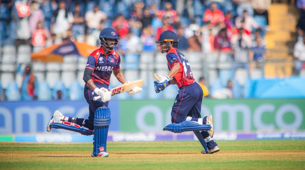 मुम्बई : आइसीसी टी- २० विश्वकप २०२६ को दोस्रो खेलमा नेपालले इटालीलाई १२४ रनको लक्ष्य प्रस्तुत गरेको छ। मुम्बईको वाङ्खेडे स्टेडियममा टस हारेर ब्याटिङको निम्तो पाएको नेपाल १९.३ ओभरमा अलआउट हुँदै १२३ रन बनाएको हो।नेपालका लागि आरिफ शेखले सर्वाधिक २७ रन बनाए। उनले २४ बलमा ३ चौका प्रहार गरे। ओपनर आसिफ शेखले २० रन बनाए। कप्तान रोहित पौडलले २३, दीपेन्द्र सिंह ऐरीले १७ रन बनाए। त्यसपछि आएका ३ ब्याटरले दोहोरो अंकमा रन बनाउन सकेनन्। १५.३ ओभरमा ५ विकेटको क्षतिमा १०० रन पूरा गरेको नेपालले त्यसपछि २ रन जोड्न ३ विकेट गुमायो। नवौं विकेटको रूपमा सन्दीप लामिछाने ५ रनमा क्याच आउट भए। ललित राजवंशी अन्तिम विकेटको रुपमा रनआउट भए। करण केसी १८ रनमा अविजित रहे। इटालीका लागि बलिङतर्फ कृसन कालुगामागेले ३ विकेट लिए। वेन मानेटीले २ विकेट लिँदा अलि हसन, जे जे स्मुटुस र जसप्रित सिंहले १-१ विकेट लिए। नेपाल र इटालीले पहिलो पटक टी-२० अन्तर्राष्ट्रिय खेलिरहेका छन्। यी दुई टोलीले सन् २०१३ मा अन्तिम पटक एकदिवसीय फर्म्याटमा खेलेका थिए।