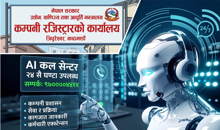 काठमाडौँ । कम्पनी रजिस्ट्रारको कार्यालयले एआईमा आधारित कल सेन्टर सञ्चालनमा ल्याएको छ । सेवाग्राहीको सहजताका लागि कार्यालयले मङ्गलबारदेखि यो सेवा सुरु गरेको हो । कार्यालयका अनुसार यो सेवा २४ सै घण्टा उपलब्ध हुनेछ । कल सेन्टरले कम्पनी प्रशासन, कार्यालयले प्रदान गर्ने सेवा र यसको प्रक्रिया, कागजात लगायत कार्यालयका कर्मचारीहरूको एक्स्टेन्सन नम्बर सहित सबै विषयमा जानकारी दिने बताइएको छ । सेवा ग्राहीले ९७००००४४१४ नम्बरमा कल गरी एआई कल सेन्टर समक्ष आफ्ना जिज्ञासा राख्न सक्नेछन् । कम्पनी दर्ता तथा दर्ता पश्चात्का क्रियाकलापमा पनि यसले सहायता प्रदान गर्ने कार्यालयले जनाएको छ । “सेवाग्राहीलाई सम्बन्धितत सबै विषयका सूचना जानकारी उपलब्ध गराउन सक्ने गरी क्रमशः ज्ञान थप गर्दै परिष्कृत र परिमार्जित गर्दै लगिनेछ,” कम्पनी रजिस्ट्रारको कार्यालयले जारी गरेको सूचनामा भनिएको छ ।